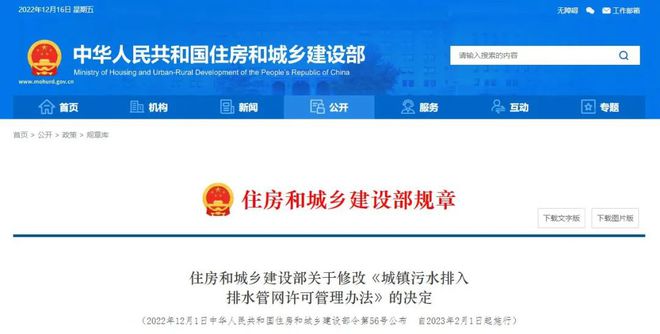 本決定自2023年2月1日起施行。《城鎮(zhèn)污水排入排水管網(wǎng)許可管理辦法》根據(jù)本決定作相應(yīng)修改,重新發(fā)布。