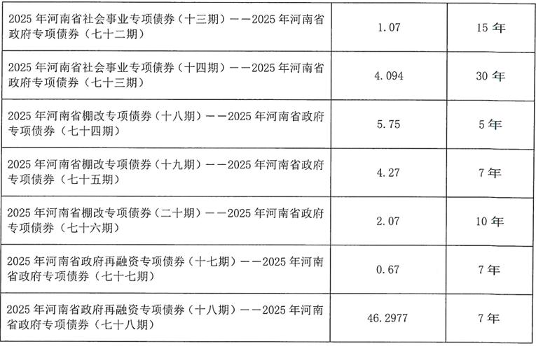 【大河財(cái)立方消息】10月13日,河南省財(cái)政廳披露2025年河南省政府一般債券(十期)、專項(xiàng)債券(六十九至七十八期)發(fā)行文件。