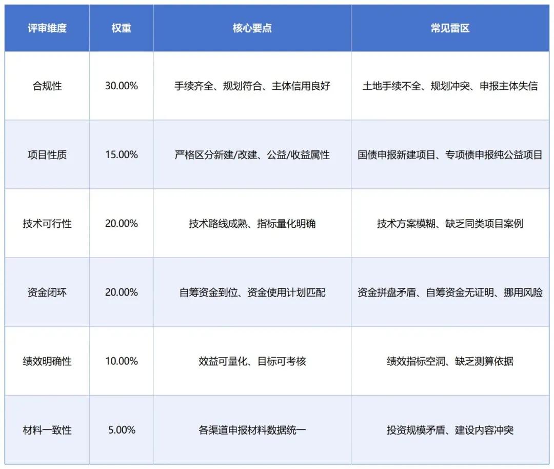 合規(guī)性要求:項(xiàng)目需納入國家或省級“十四五”規(guī)劃及相關(guān)專項(xiàng)規(guī)劃;必須完成可研批復(fù),且安評、能評、環(huán)評、用地預(yù)審等核心手續(xù)齊全;嚴(yán)禁涉及房地產(chǎn)開發(fā)、樓堂館所建設(shè)、形象工程等負(fù)面清單內(nèi)容。